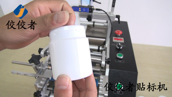 半自動(dòng)塑料圓瓶貼標(biāo)機(jī)貼標(biāo)過程詳解