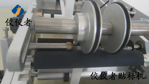 接著踩動腳踏開關,設備出標,標簽粘在產品上后通過兩個覆標滾筒的轉動將標簽均勻平整的覆在產品上,如下圖: