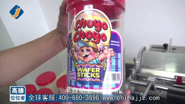 一到超市總是會到副食區(qū)去欣賞下那些糖果蜜餞的罐子上面貼的花花綠綠的標(biāo)簽,那么這些漂亮的標(biāo)簽是用什么貼上去的呢?下面就給大家介紹下這臺紅蓋圓罐貼標(biāo)機(jī)(半自動(dòng)上糊貼標(biāo)機(jī))。首先,我們來一起欣賞這臺紅蓋圓罐貼標(biāo)機(jī),如圖: