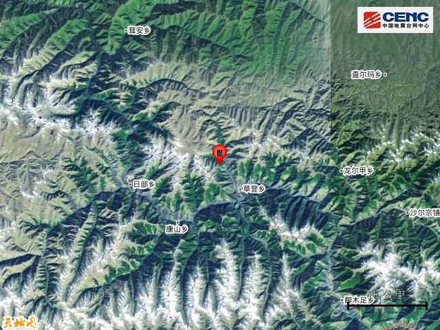 震中附近人口不是特別密集,震中距最近的草登鄉約6公里。