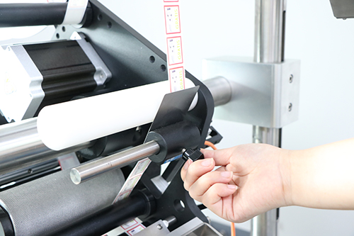 松開貼標頭主要和次要卡盤的輔助支撐來使得標頭可以將螺絲牢牢加緊,根據產品的高度以及標簽的高度來進行位置的調整,以確保標簽在貼到產品上時不會出現過大的誤差,如果不確定調整的位置合適,可以進行幾次測驗以確保無誤。