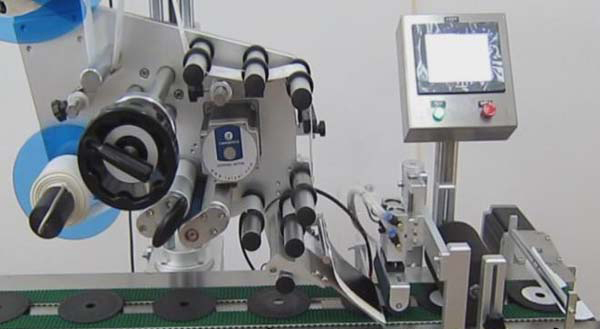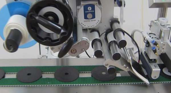 上圖這張圖片是已經被送到貼標頭的位置了.而且正在貼不干膠.下面來張更具體一點的