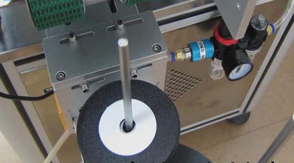 下圖這一個就是砂輪片貼好了之后,掉下來并掉入收輪機構(自動收集貼好的砂輪片)的過程.
