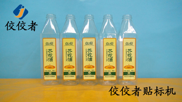 芥花油瓶貼標機可以針對方瓶、扁瓶、有弧度的扁瓶進行貼單標、雙標,如中國勁酒、海飛絲、伊利利樂包等,廣泛應用于日化、化妝品、石化、醫藥等行業。貼標精度為+/-1mm,貼標速度由產品和標簽的尺寸來確定,最快可以做到一分鐘100多瓶;究梢詽M足一般工廠的生產效率要求。與其他貼標簽機相似的是,可選配色帶打碼機和噴碼機,實現在標簽上打印生產日期和批號信息,實現貼標-打碼一體化。另外也可選配流水線噴碼機,實現貼標前和貼標后在產品上噴印產品信息。下面我們先來看看芥花油瓶貼標機的貼標樣品吧: