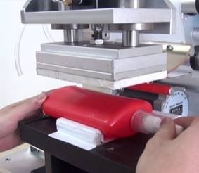 此外,若客戶產量不大,可以采用半自動貼標機進行貼標,這時需要一個面貼好再貼另外一面。針對產量不是很大的客戶是非常適合的,在滿足改善生產質量的同時節約投入成本。如下圖: